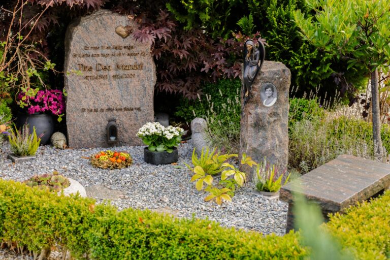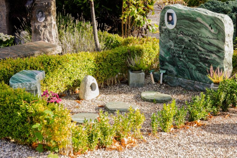 For at skabe et personligt og mindeværdigt gravsted tilbyder vi et udvalg af smukt tilbehør, der kan tilføje et ekstra lag af betydning og ro. Vælg eksempelvis en bænk til eftertænksomhed, et bronzeskulptur som hjerte, en lysholder til lys i mørket, stenvaser til blomster eller figurer med særlig symbolik.